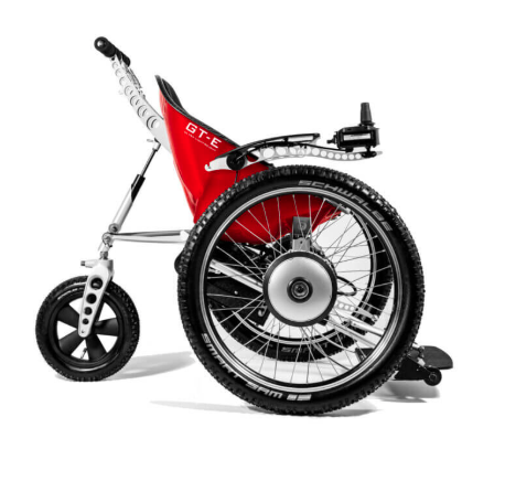The GTE’s power comes directly from two 24V 120W motors in the front wheels, delivering up to 6 km/h – making it perfect for use on pavements or any other type of terrain. This also means that removing the wheels reduces the weight of the main seat so you can load it into a vehicle one piece at a time.